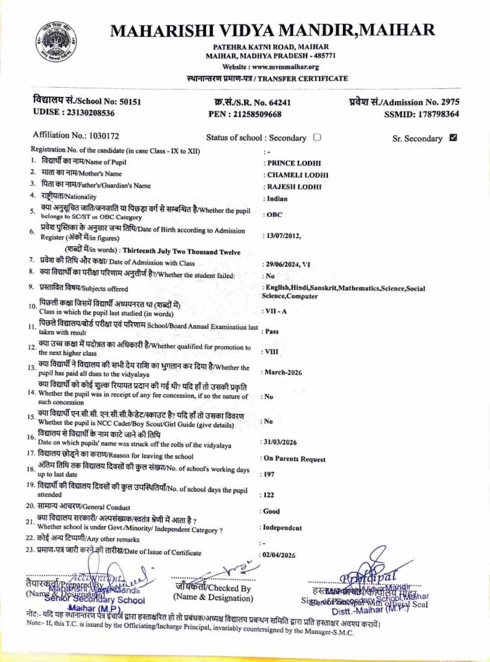 | 5 | 2975 | PRINCE LODHI | VIII | ||